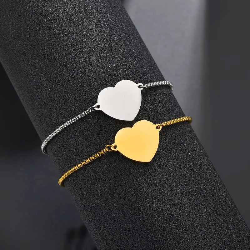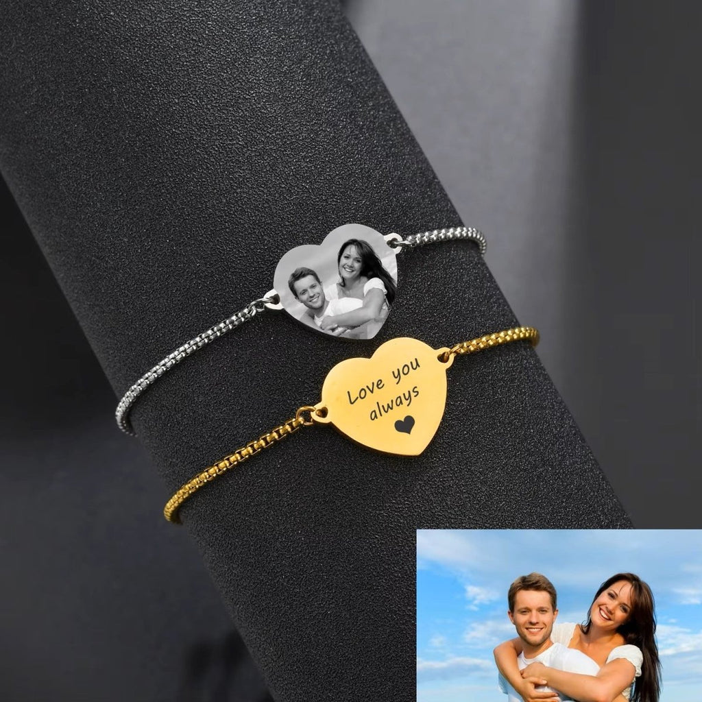 - Heart shaped bracelet pendants with photo engraving to capture special moments