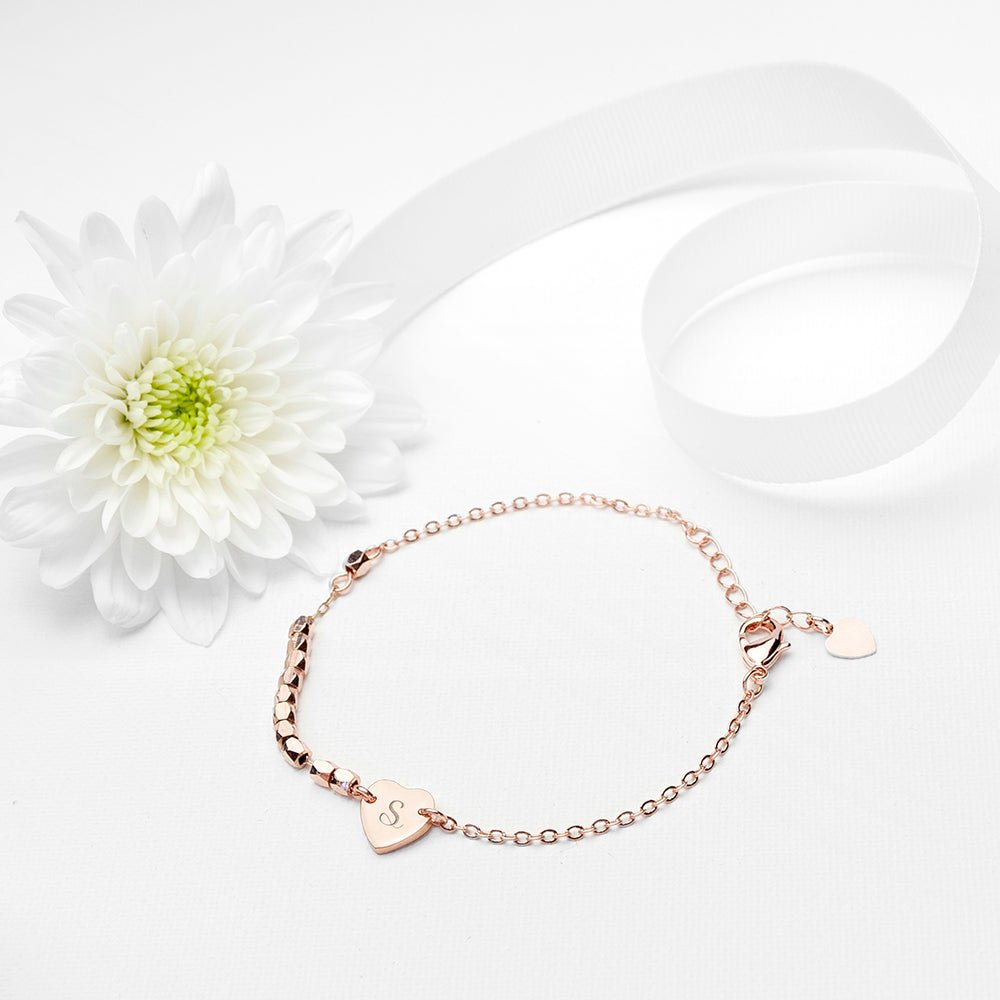 Delicately feminine and effortlessly elegant, our dainty Personalised Rose Gold Heart Charm Bracelet is a piece of jewellery that speaks straight from the heart. This thoughtful, stylish, and timeless gift is sure to leave a lasting impression on anyone who receives it. Whether you’re searching for something heartfelt for Mother’s Day, a romantic token for Valentine’s Day, or a meaningful ‘just because’ present for that special someone in your life, this bracelet is a thoughtful keepsake that reminds her how much she is loved every time she puts it on.