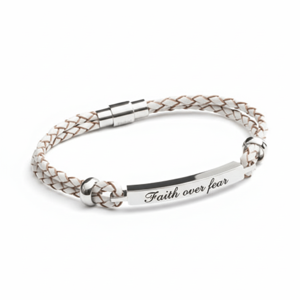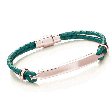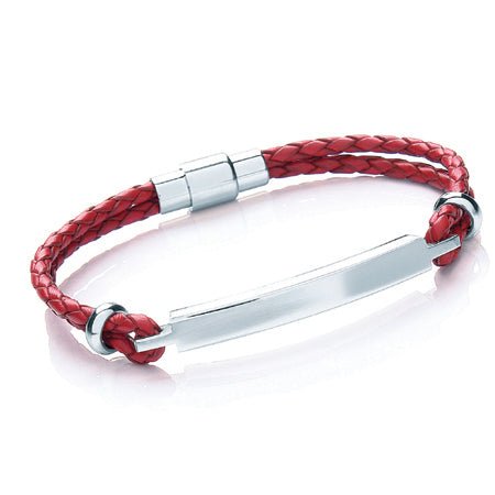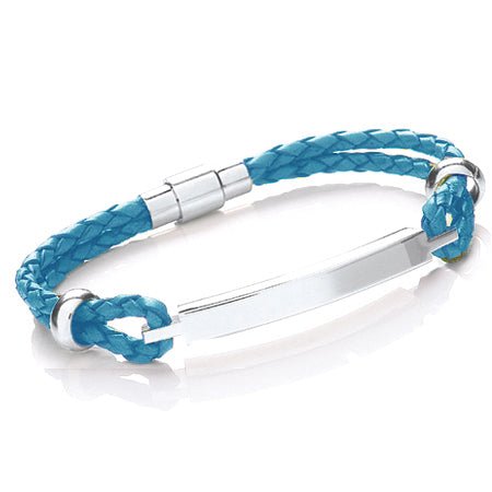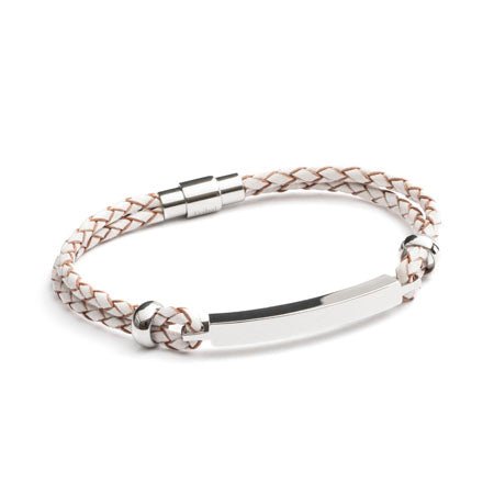 This stunning braided leather bracelet combines style and sentiment, featuring a stainless steel ID plate that can be engraved with your personal message. Perfect for creating a lasting memory.
