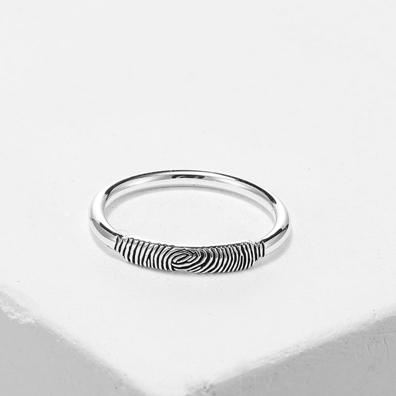 Fingerprint Ring | Personalised Memorial Ring - Sterling Silver Band, Custom Engraved Jewelry
