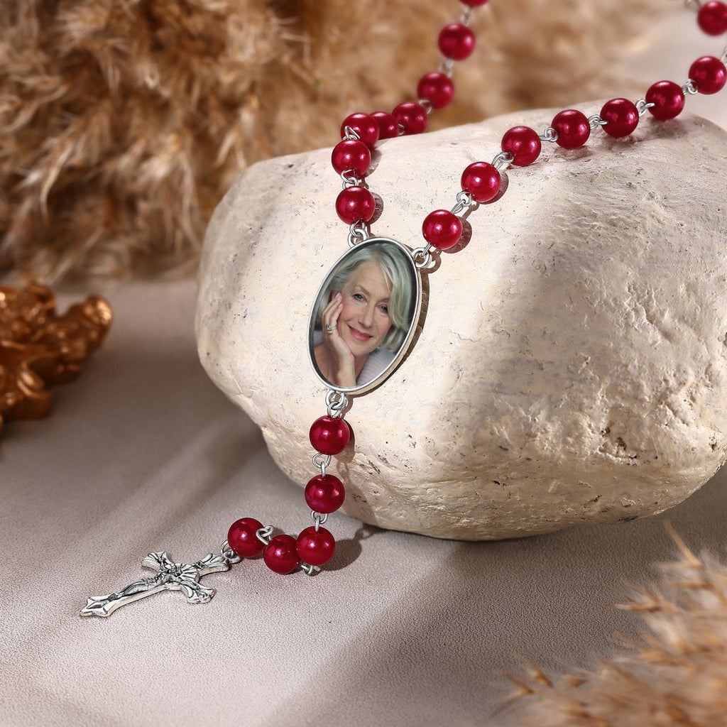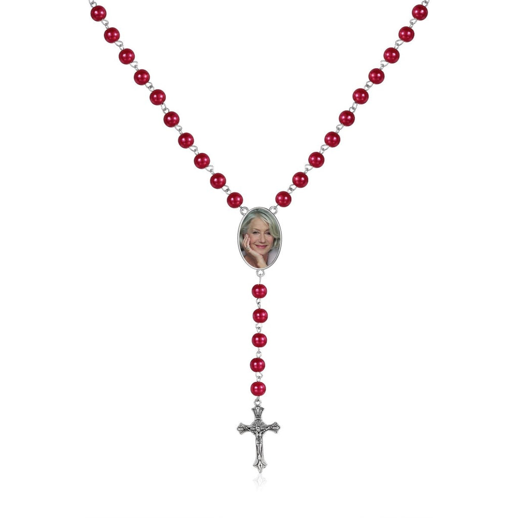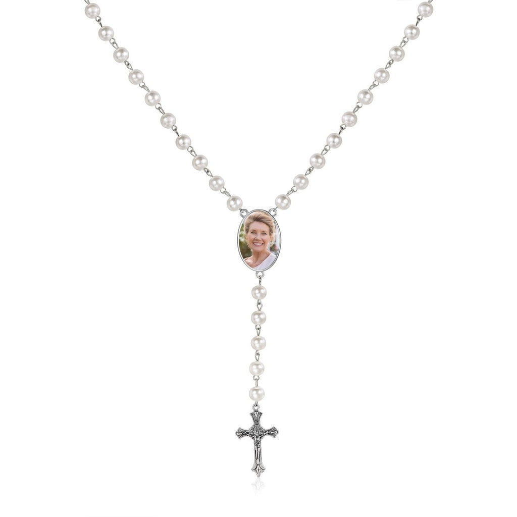 Personalised Photo Rosary Necklace - Custom Engraved Memorial Pendant
