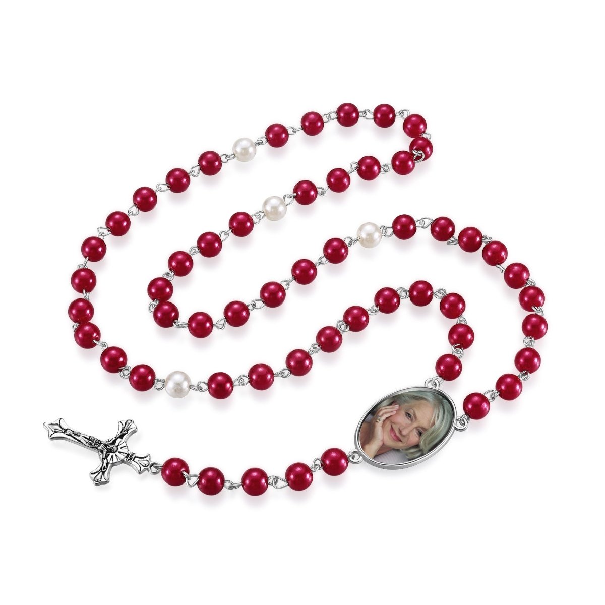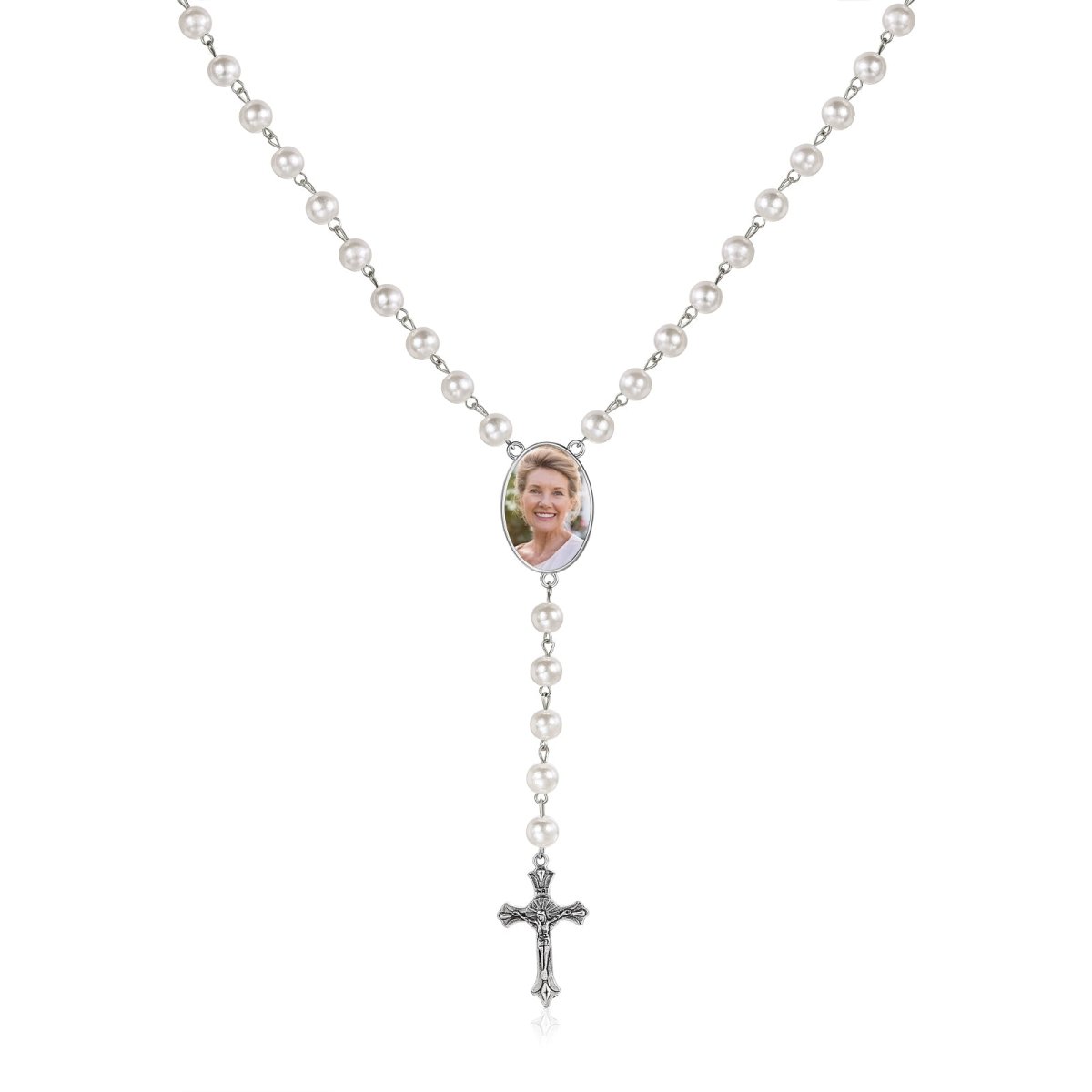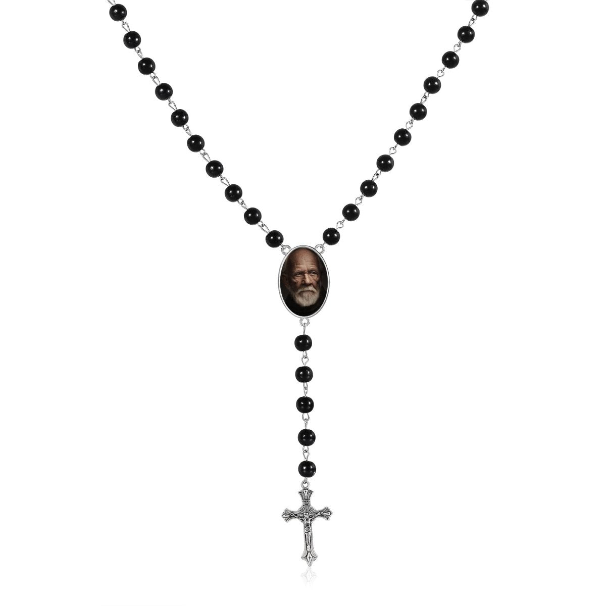 Personalised Photo Rosary Necklace - Custom Engraved Memorial Pendant