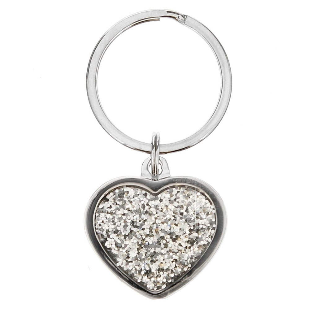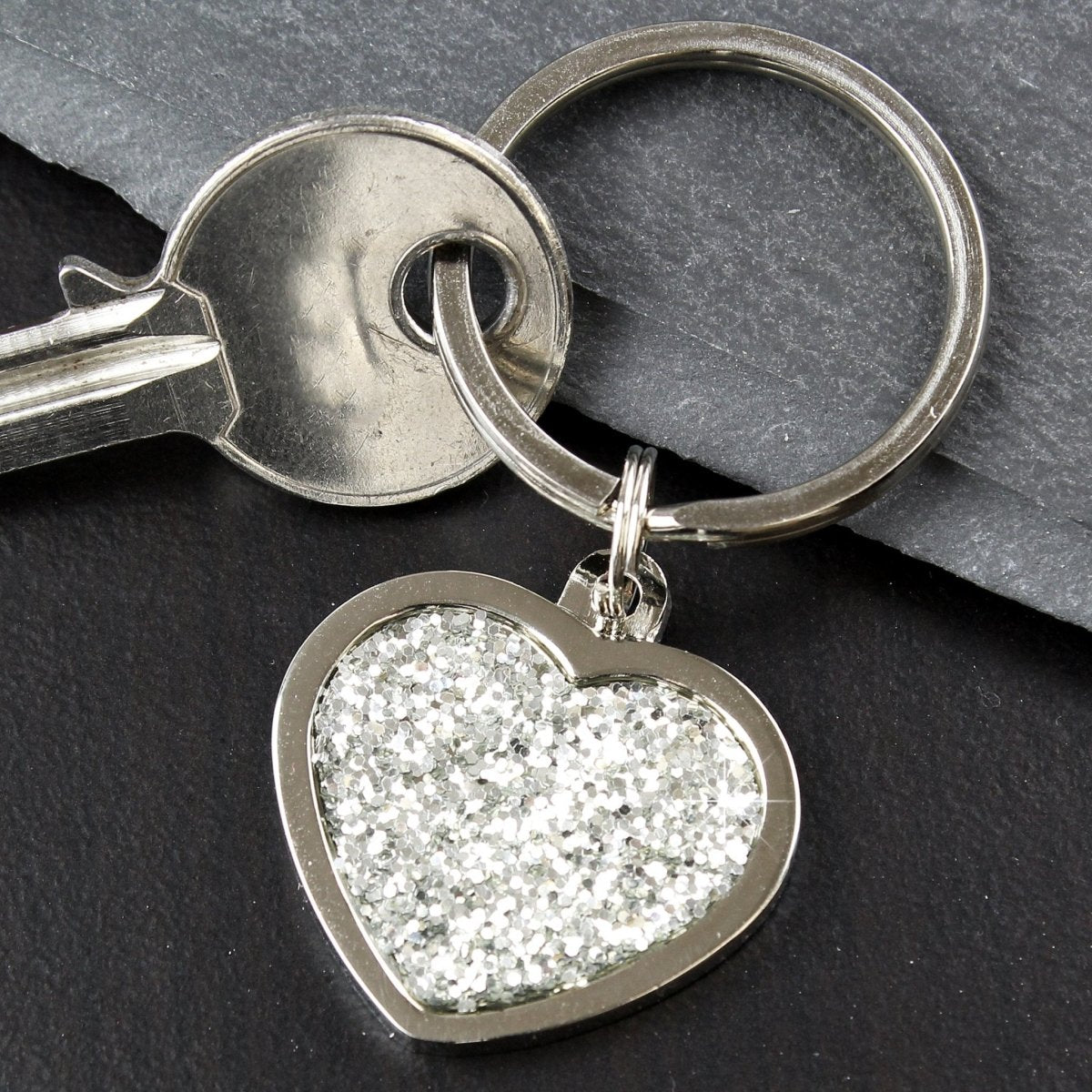 Personalised Diamante Keyring - Silver Heart Sparkly Engraved Keepsake Gift
