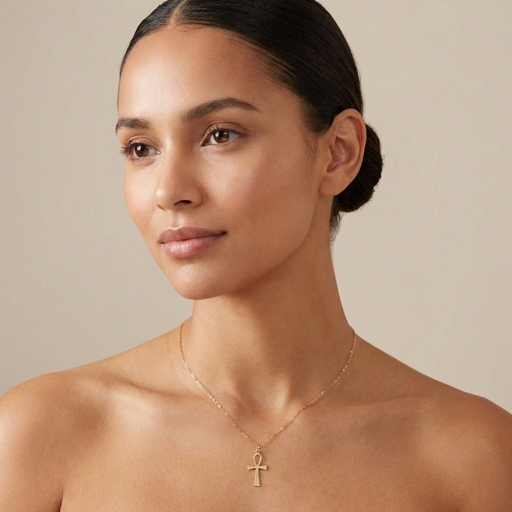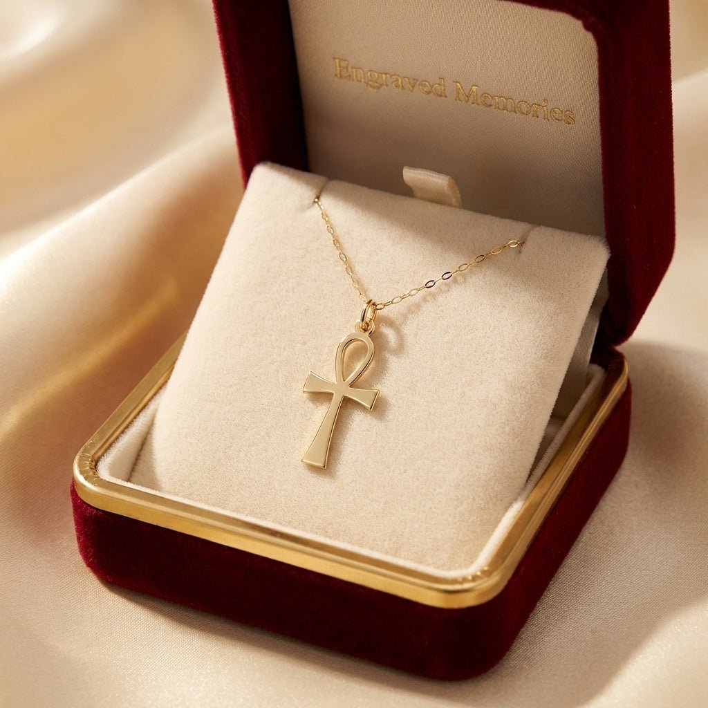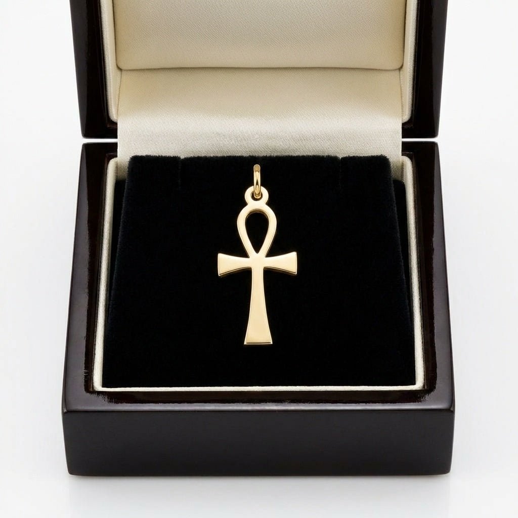 Discover the beauty and meaning of our exquisite 9ct yellow gold Ankh cross pendant. The Ankh, an ancient Egyptian hieroglyphic symbol representing eternal life and divine power, makes this piece both spiritually significant and beautifully crafted.