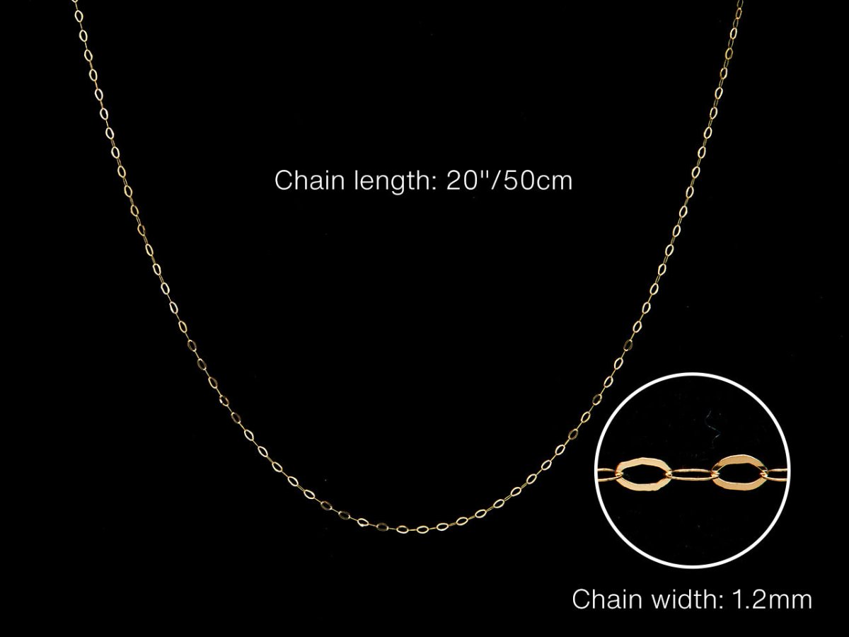 - Optional 1.2mm trace chain: 20 inches / 50cm length
