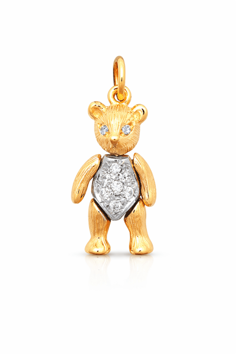 Crafted in luxurious 9ct yellow gold with a multicoloured finish, the teddy's tummy features a sparkling cubic zirconia-set panel that catches the light beautifully. The bear's eyes are also adorned with tiny CZ stones, adding extra charm to this precious piece.