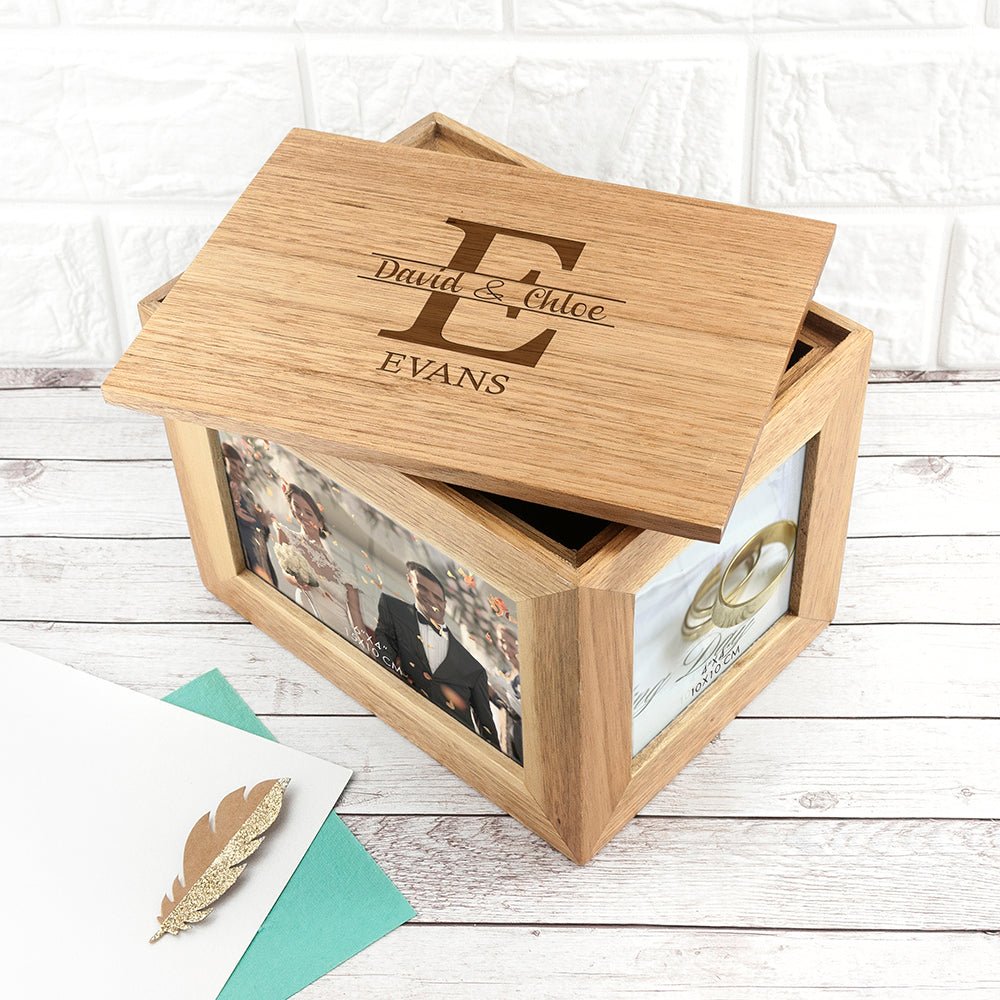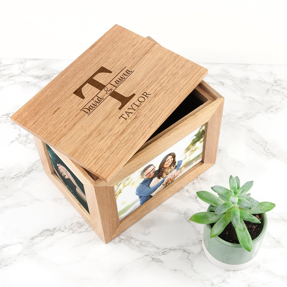Personalised Couple Monogram Midi Oak Photo Cube Keepsake Box