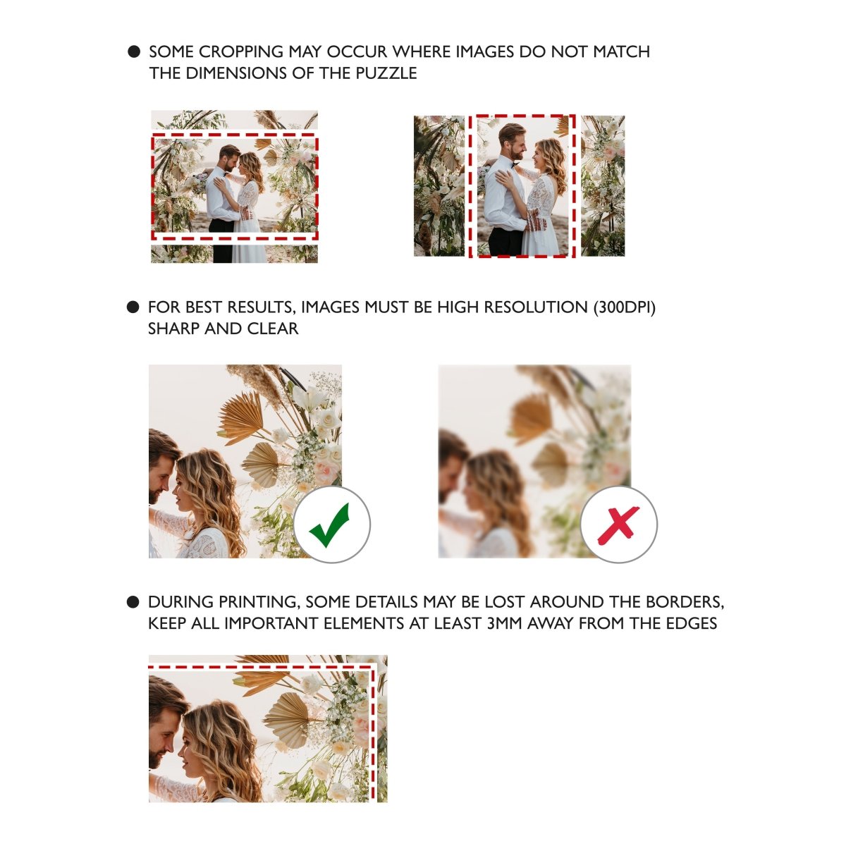 Please ensure the photo you upload is as clear and high res as possible, the better your image is the better your jigsaw puzzle will come out - every pixel counts!