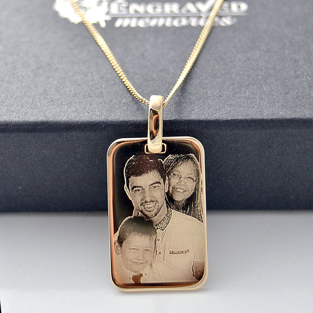Personalised Gold Dog Tag Necklace – 18kt Plated Custom Photo & Text Engraved Pendant for Men