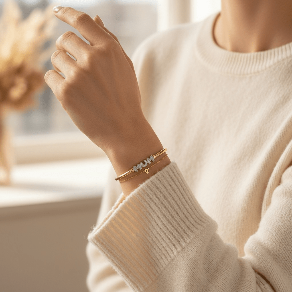 Celebrate the most special woman in your life with this stunning 9ct Yellow Gold MUM Bangle, beautifully set with sparkling white cubic zirconia stones. Crafted in solid 9-carat gold, this elegant hinged bracelet combines timeless sophistication with heartfelt sentiment — the perfect gift for Mum on birthdays, Mother’s Day or Christmas.