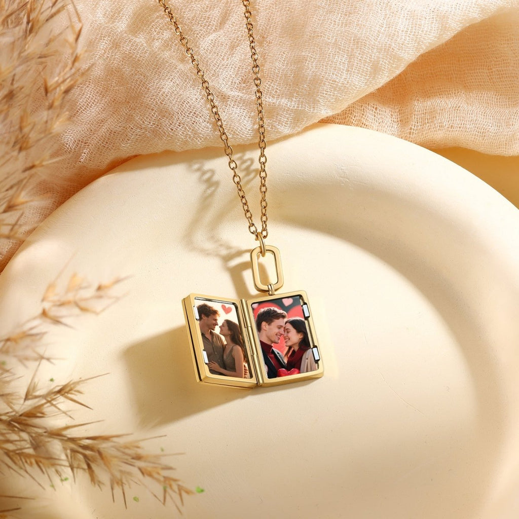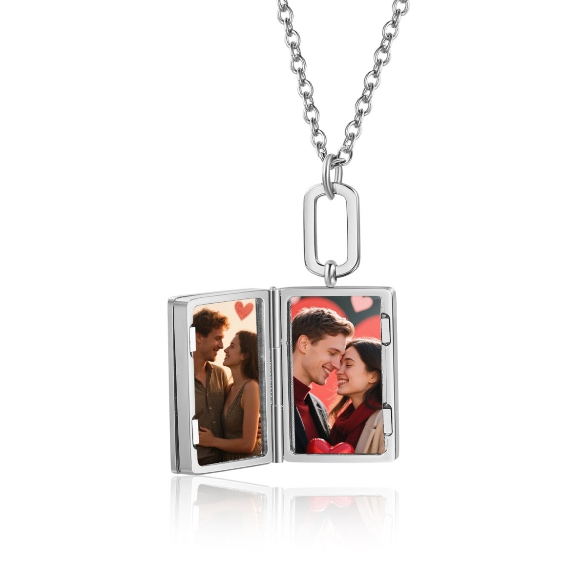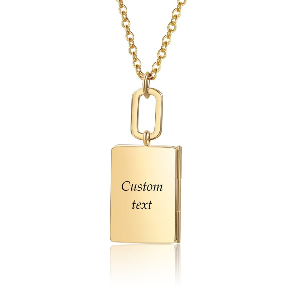 Personalised Rectangle Photo Locket Necklace with Engraved Message