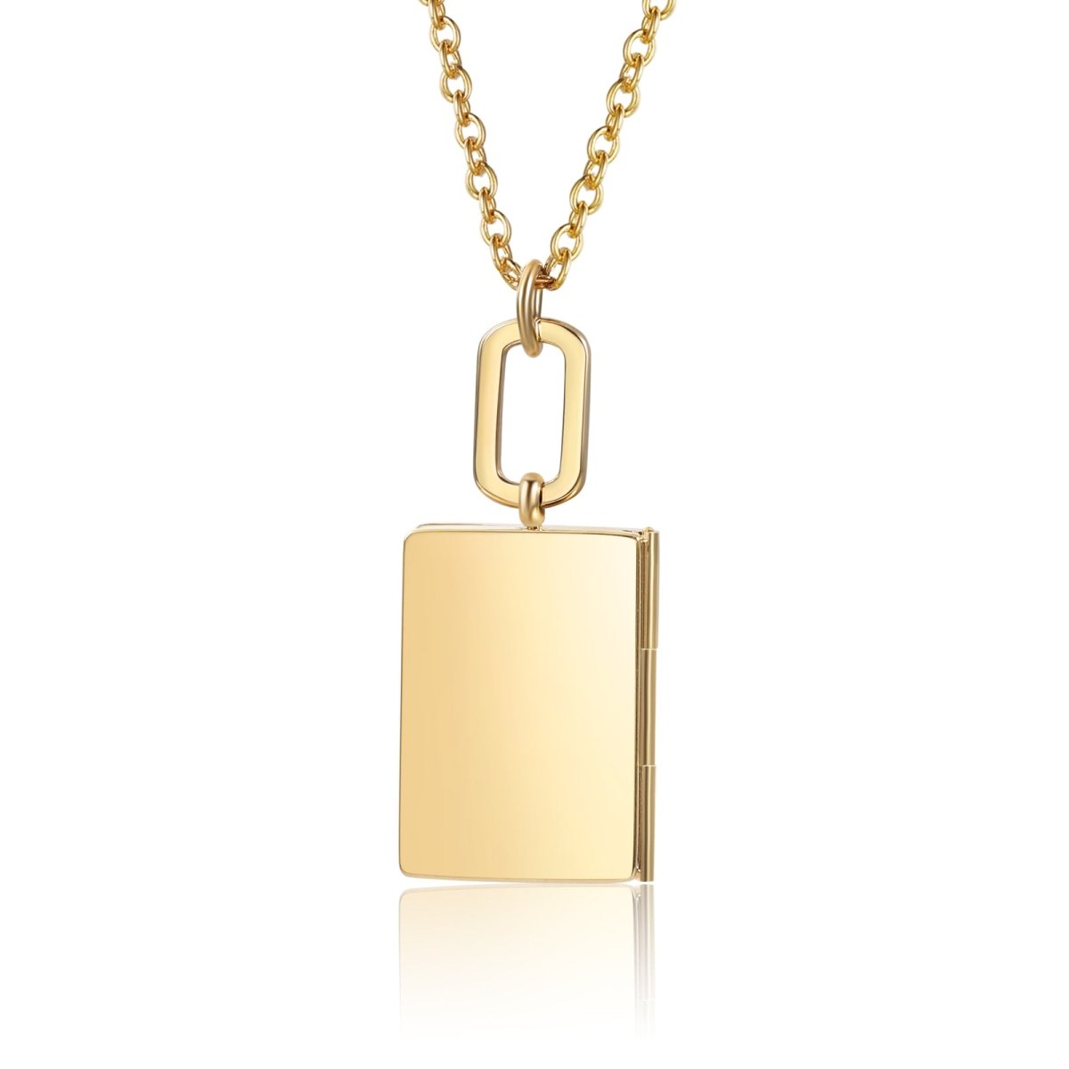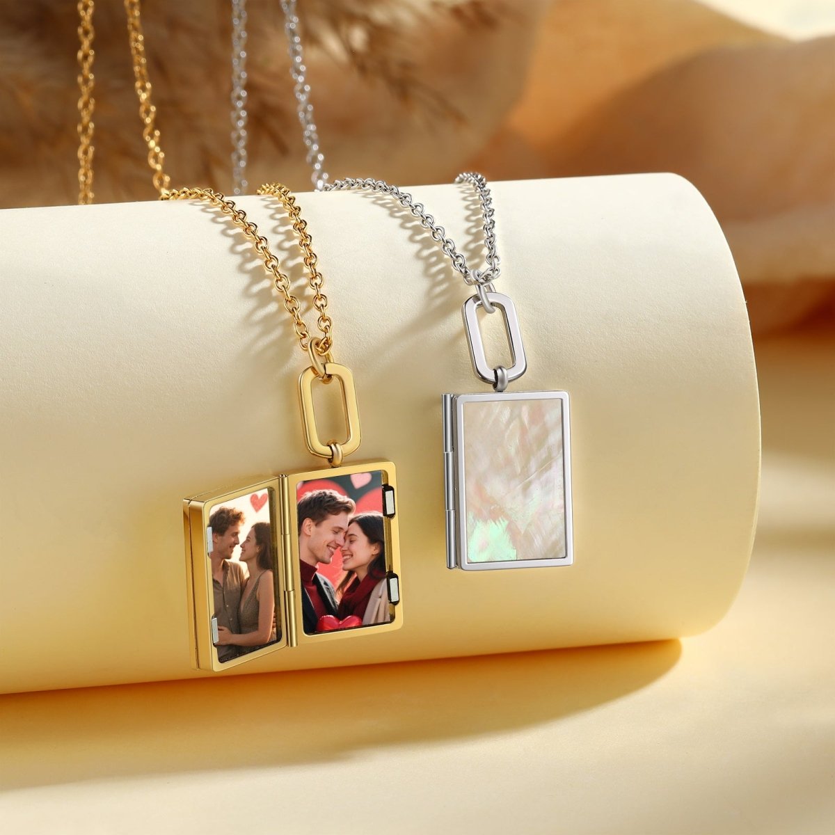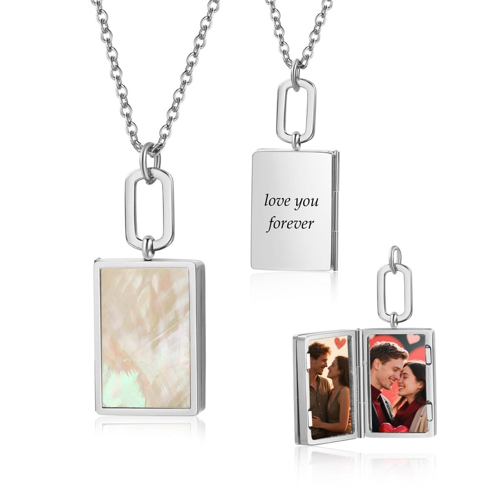 Personalised Rectangle Photo Locket Necklace with Engraved Message