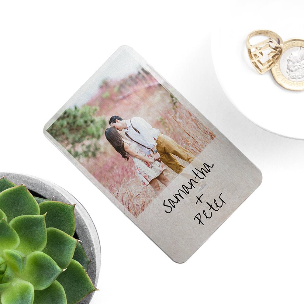 Store your most precious memories in this handy Personalised Moment in Time Metal Wallet Keepsake which easily slots into any credit card compartment in any wallet or purse. Take your loved ones with you wherever you go, know that whenever you are you’ll ever be alone as they are always there for you. The ideal anniversary present for your that person in your life who complete you or an ultra-sentimental birthday gift for your closest friend to show how much they mean to you. It'd also make a heartfelt Mother's Day or Father's Day gift!