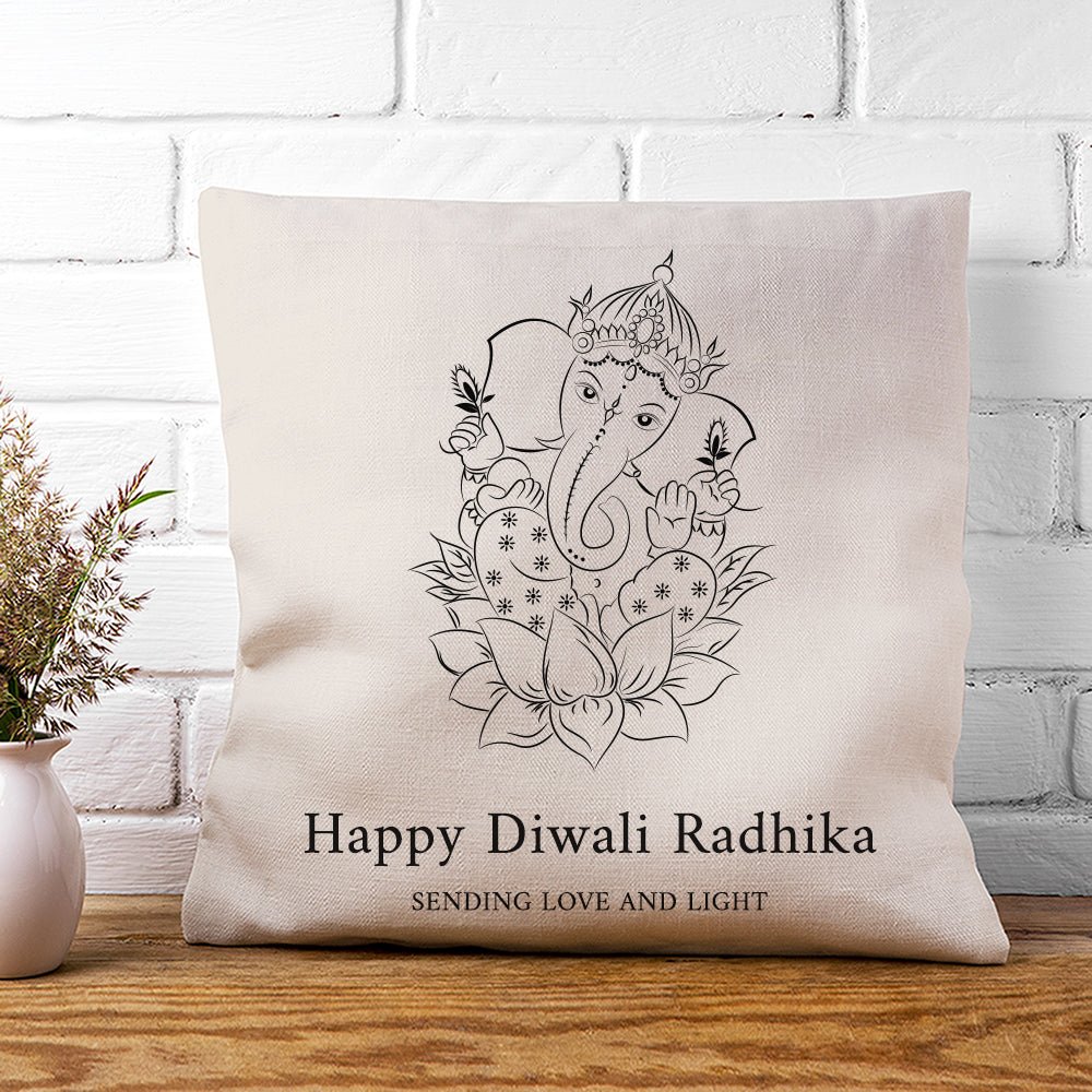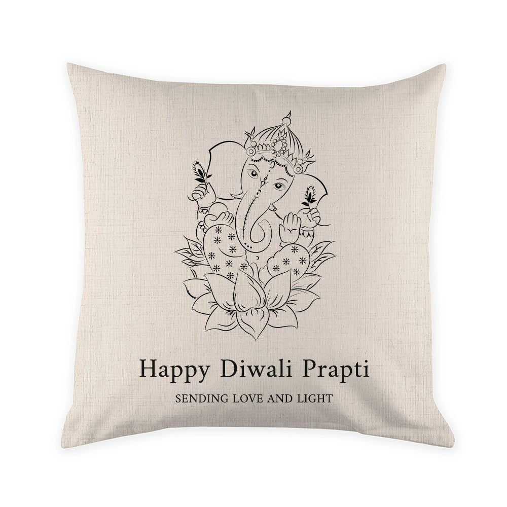 A ray of beauty this Diwali, our stunning personalised Diwali Ganesh Cushion Cover would make a gorgeous gift for a loved one or a beautiful Diwai decoration for your family celebrating the festival of lights. This radiant cushion cover is the perfect way to show your loved ones how much they mean to you and will bring a touch of festivity to any home. But what makes this cushion cover truly special is that it can be personalised with a name, making it a unique and cherished gift. Our amazing personalisation team will professionally print it onto your cushion cover for a truly one-of-a-kind gift that will add a touch of magic to a loved one’s Diwali celebrations. ‘Happy Diwali [Name], Sending Love and Light’ comes as standard text, just below the beautiful and intricate design of Ganesh and the lotus flower. Name: Up to 12 characters Dimensions: 40cm x 40cm Made from linen.