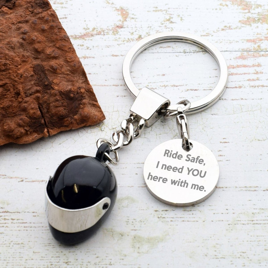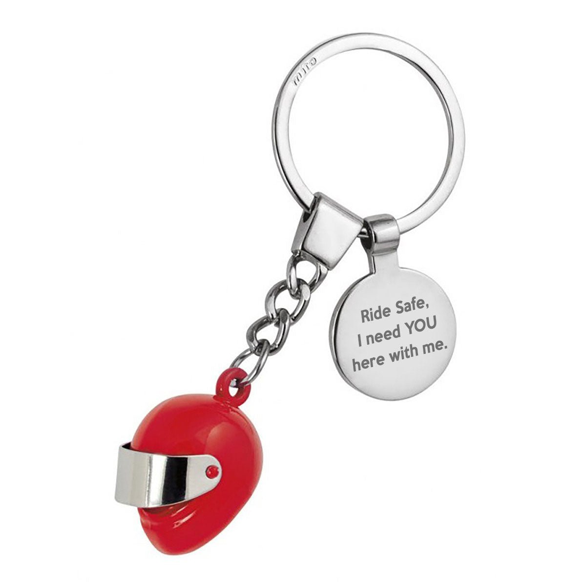 Personalised Motorcycle Helmet Keyring with Engraved Ride Safe Message