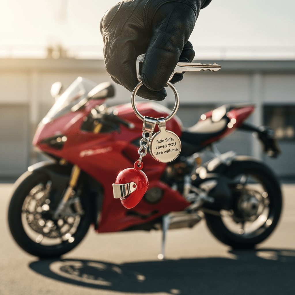 This keyring makes a touching gift for bikers, motorcycle enthusiasts, or anyone who rides. Whether it's for a partner, family member, or friend, it's a daily reminder to stay safe on the road whilst keeping loved ones close.