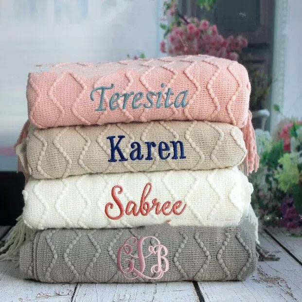 Personalised Embroidered Knit Blanket - Custom Throw with Name