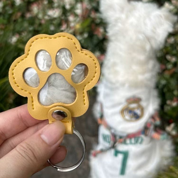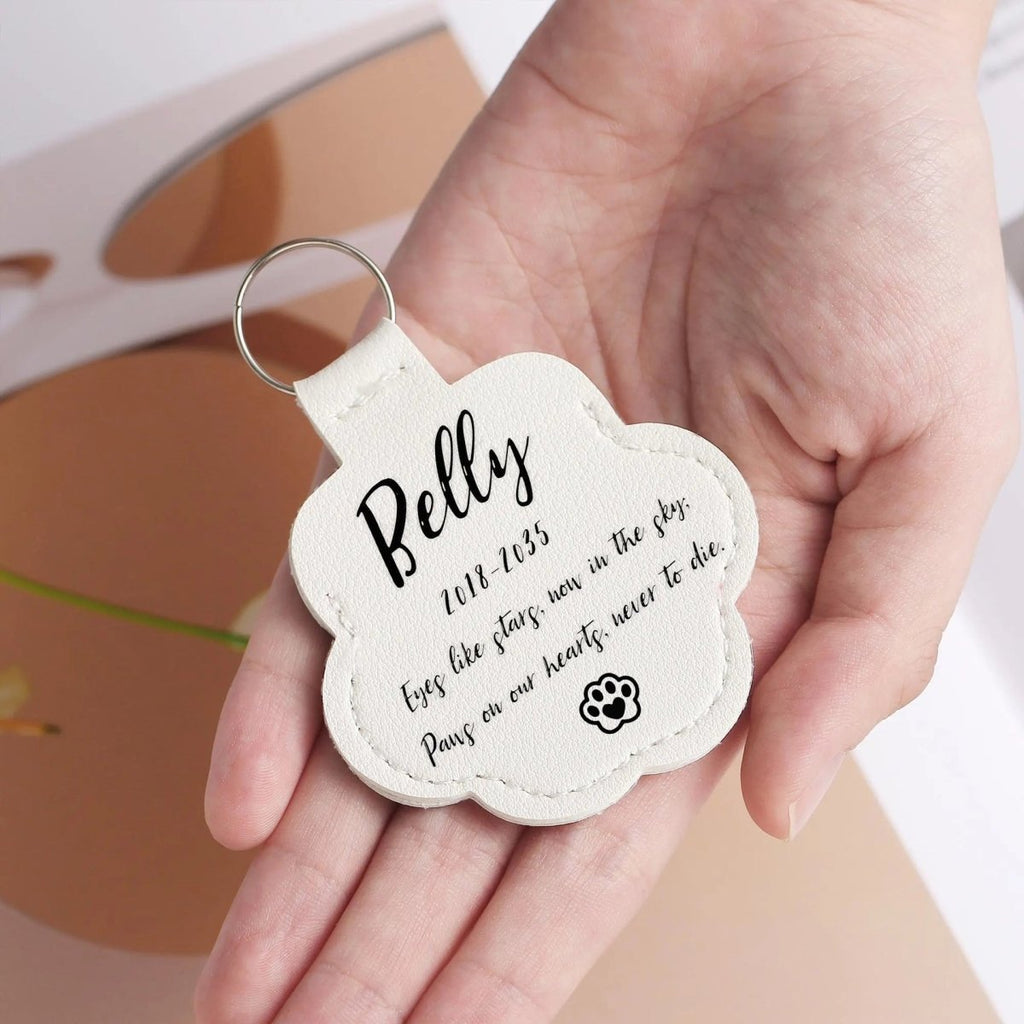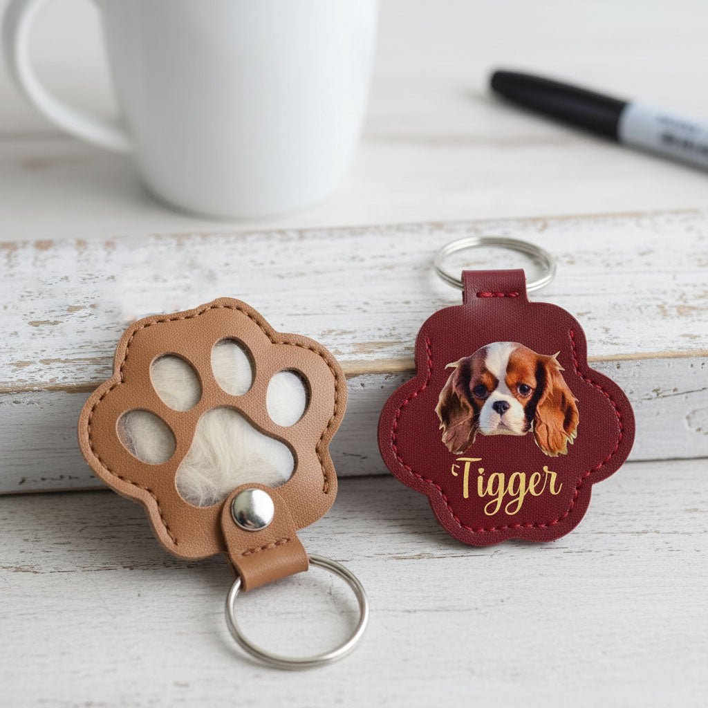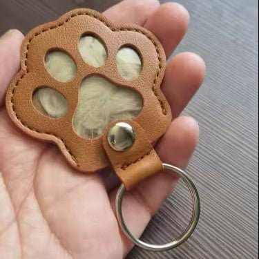 This personalised paw-shaped keyring safely stores a little fur, turning precious memories into a daily keepsake. Made from durable faux leather and available in multiple colours, it can be customised with your pet’s photo, their name, special dates, or a short message.A small piece of them, always with you.