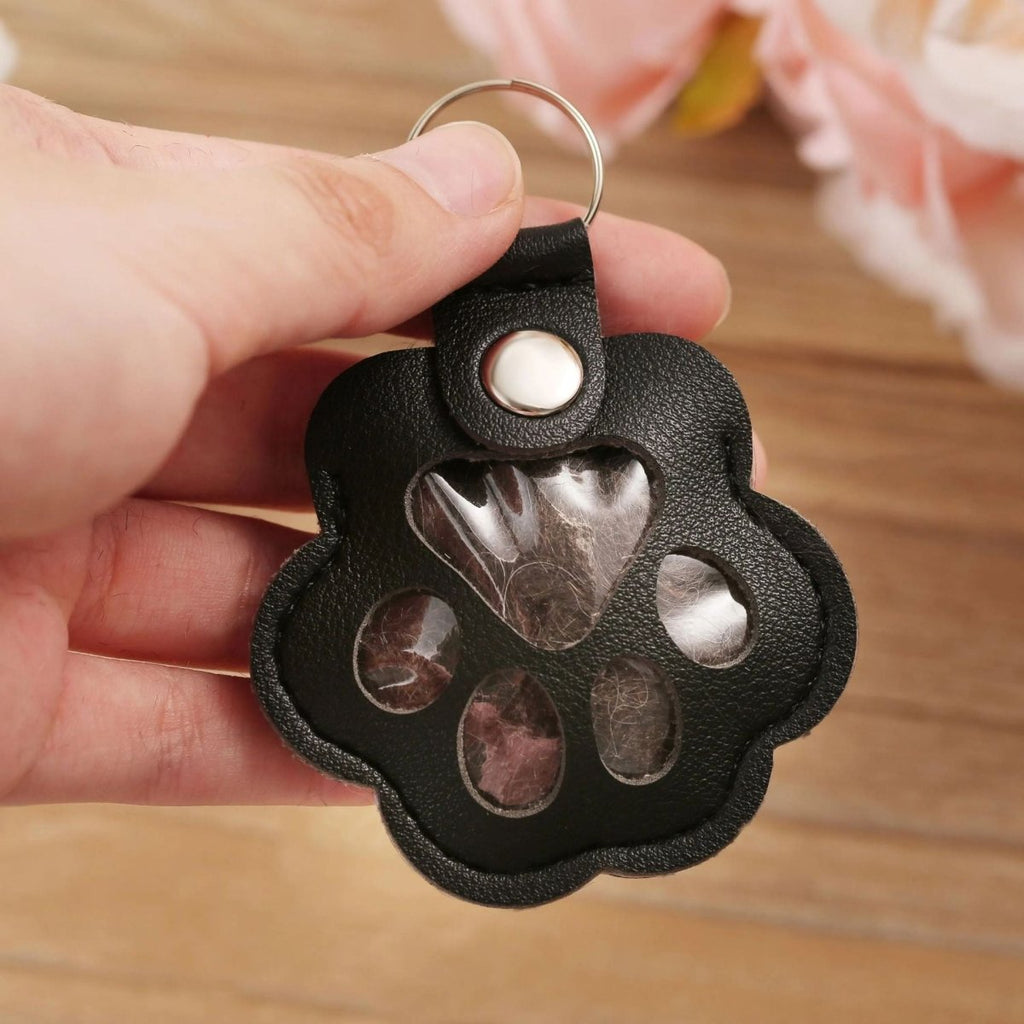 • Faux leather paw shape with clear paw-window to hold fur