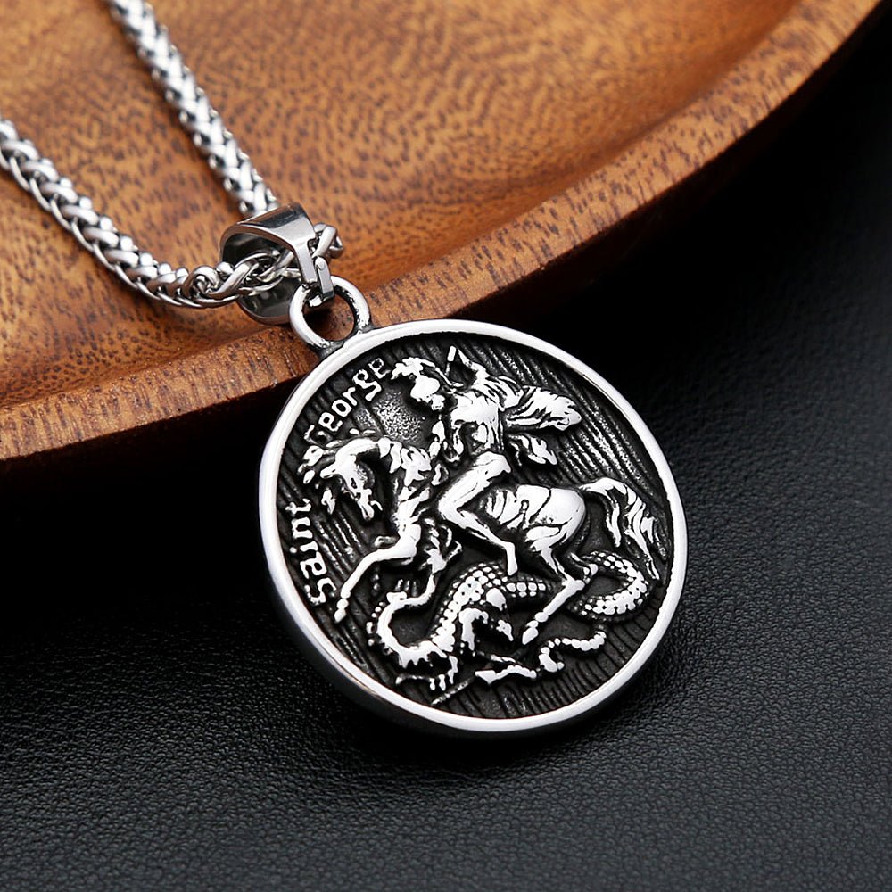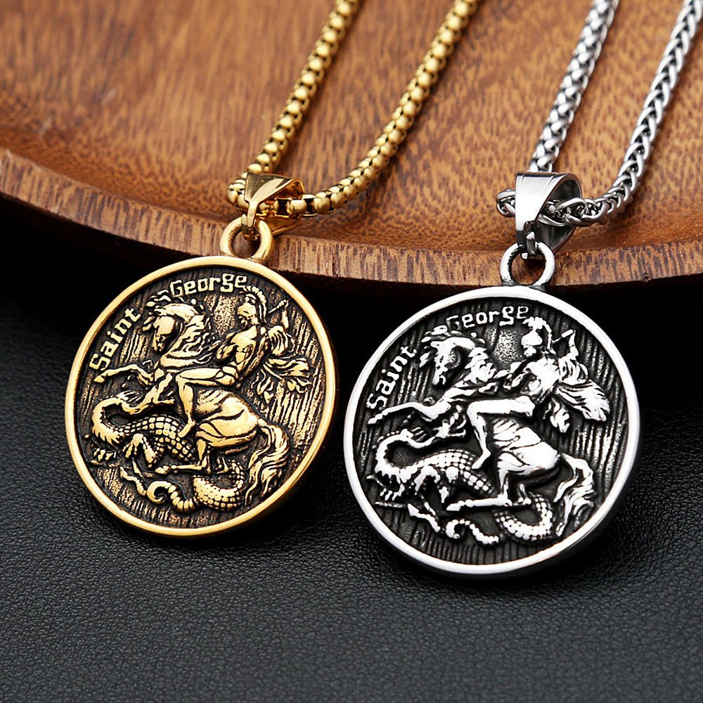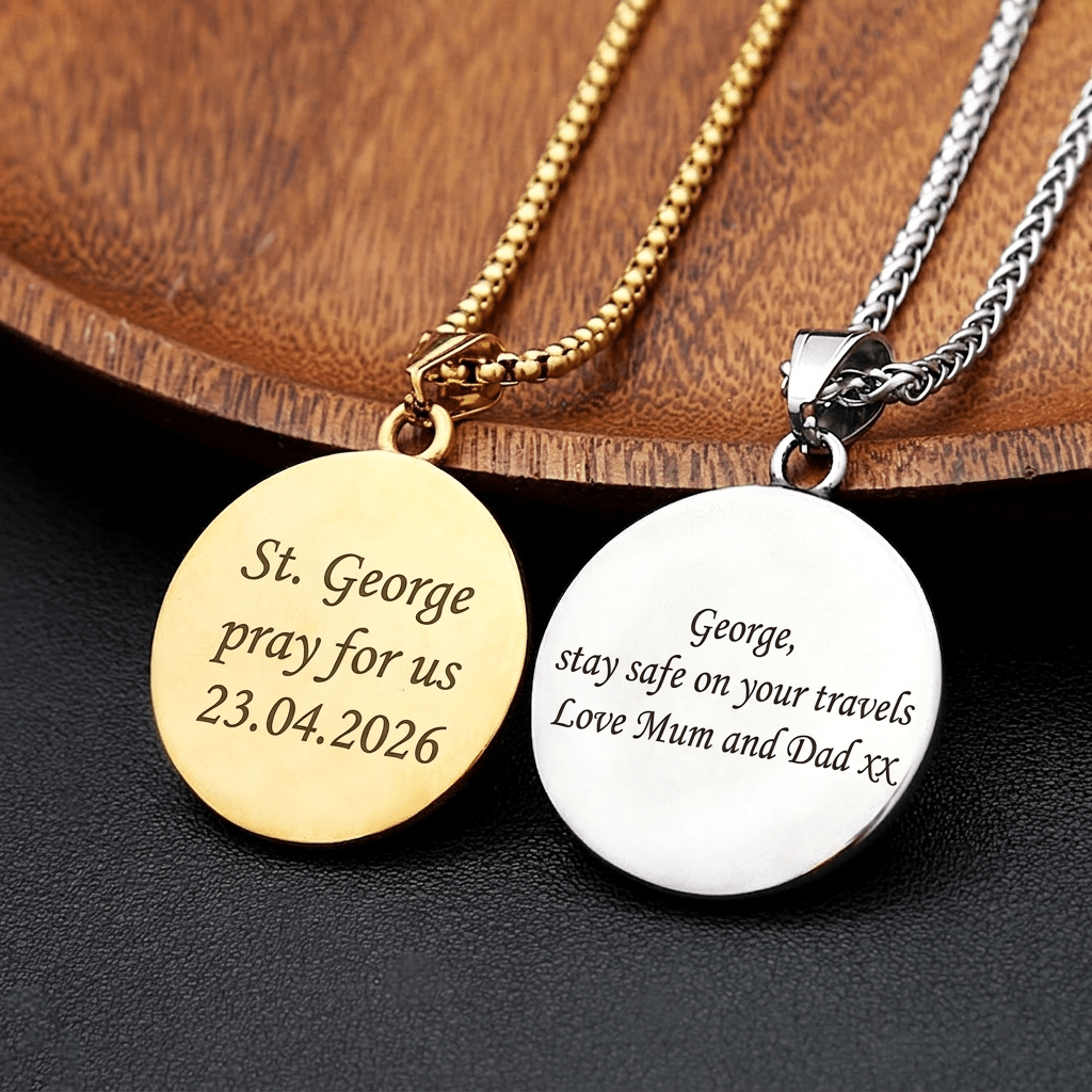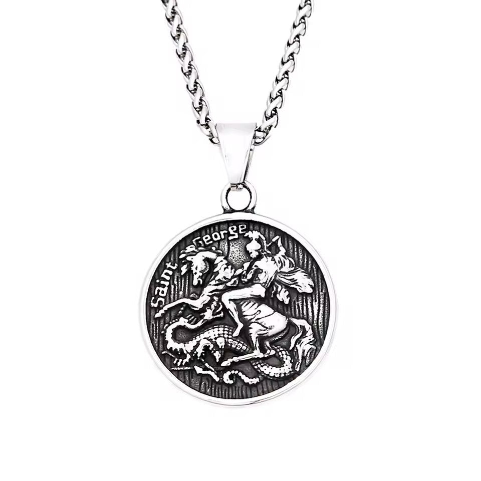 Saint George Pendant Necklace – Personalised Stainless Steel, Silver or Gold, 60cm Chain