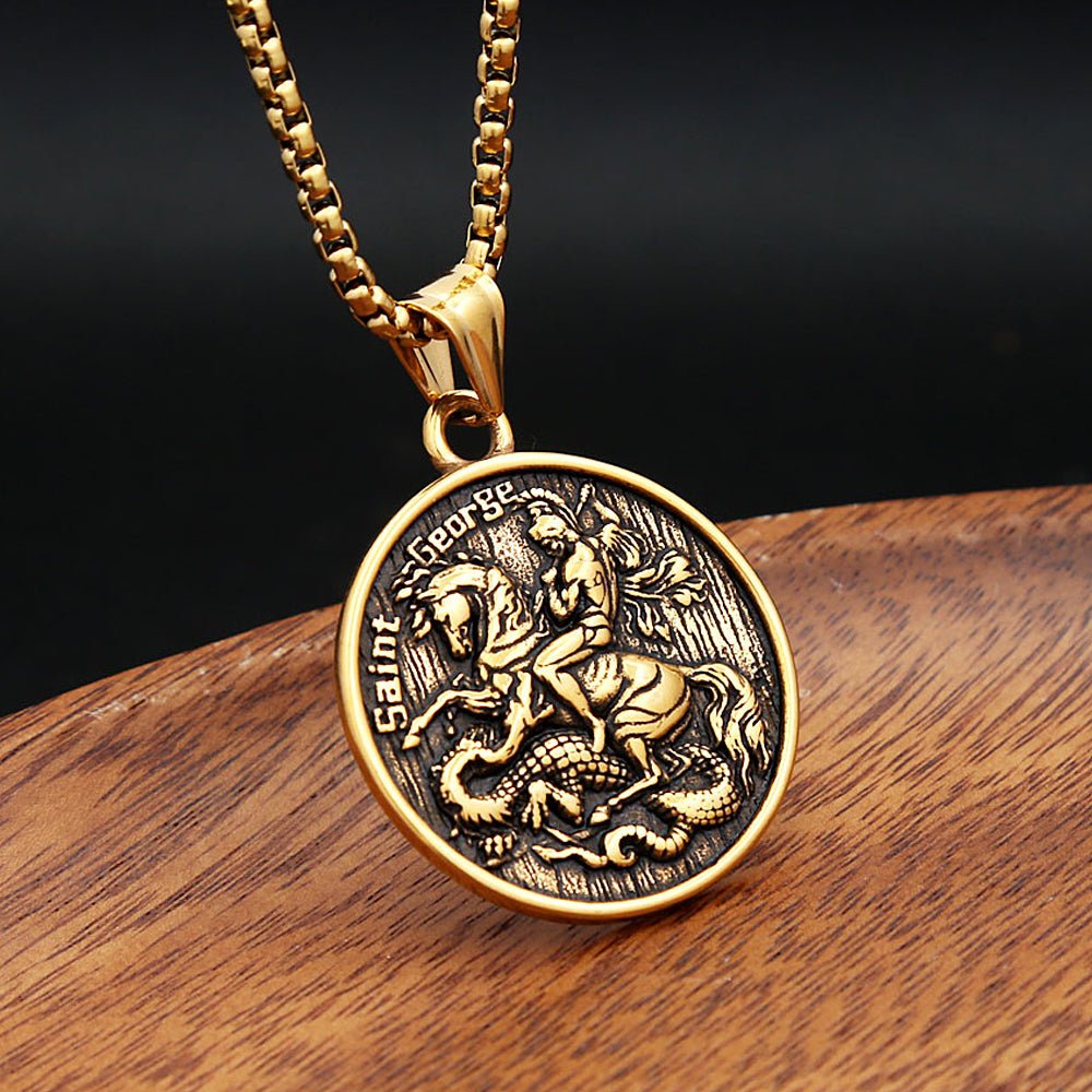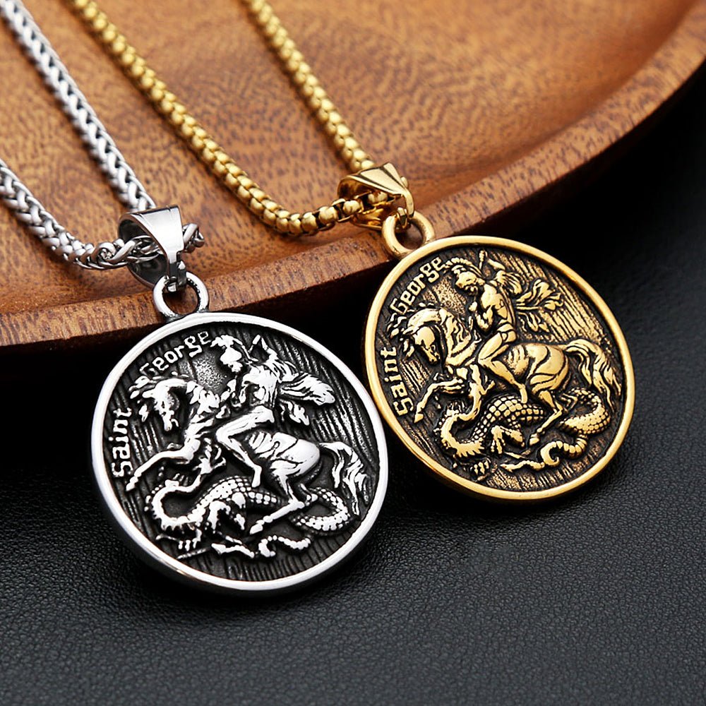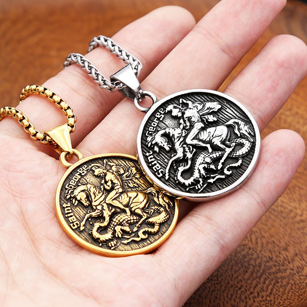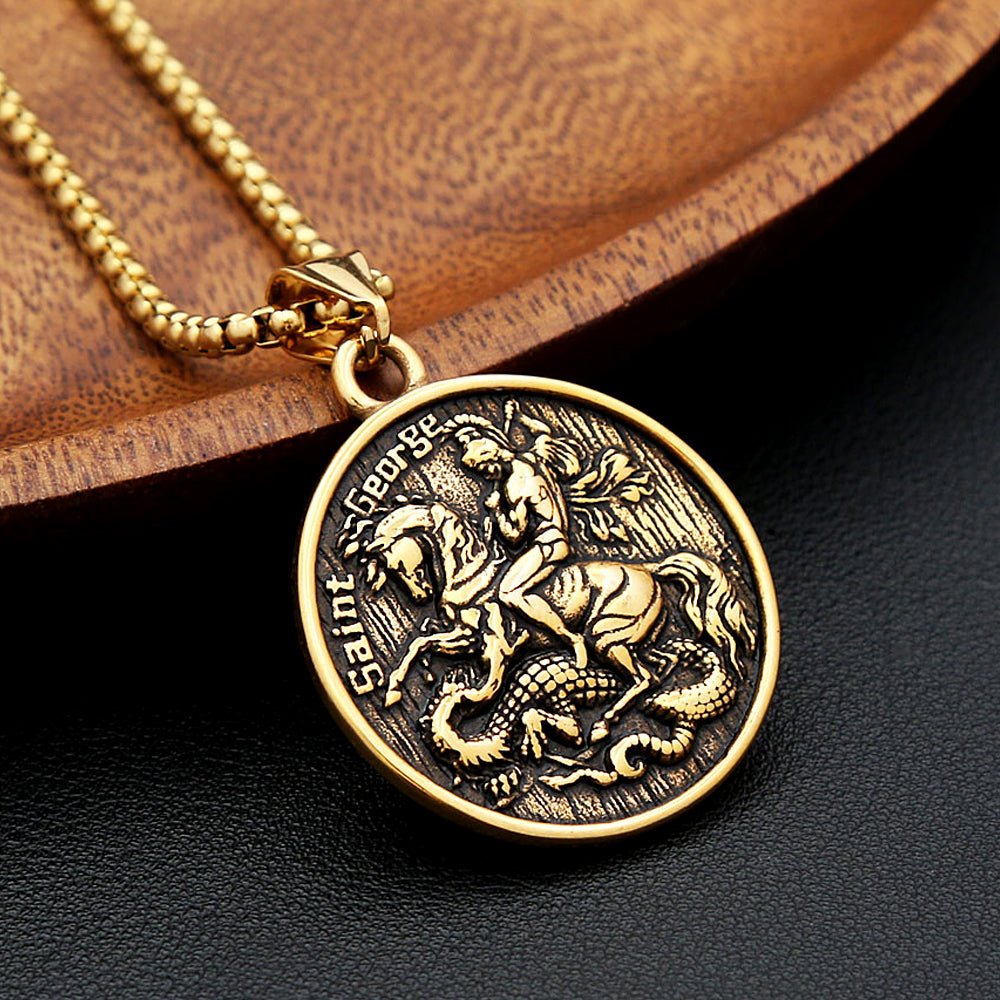 Saint George Pendant Necklace – Personalised Stainless Steel, Silver or Gold, 60cm Chain